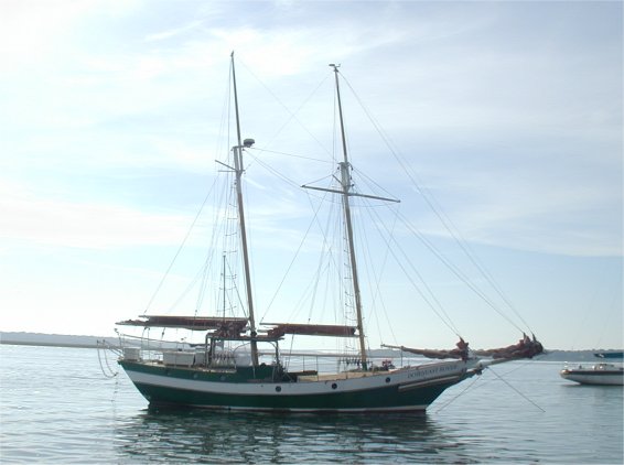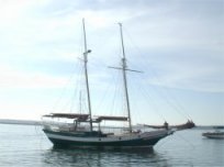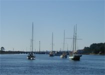 boats, sometimes getting 2 or 3 boats deep... Had dinner on Eridanus with Brad from the Downeast Rover, a steel topsail schooner that does group charters. Waiting for the bridge to start floating again. |