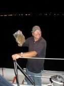 Brad on Downeast Rover who was having dinner with Kate and Chuck. Then it took 3 tries to get the anchor set properly -