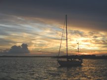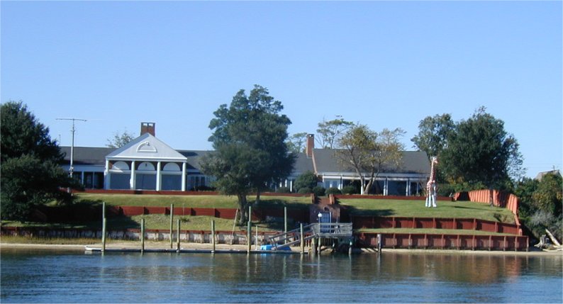 and in a foul mood. But Brad, Kate and Chuck came over and made me go to Hemmingways with them for a couple of tequilas. So I'm off to Andina's for her annual 'orphan's' Thanksgiving dinner tomorrow. Thanksgiving Day - Good day in South Carolina! Well, Andina, out hostess Emily, and thier friends cooked up the best Thanksgiving dinner I have ever had. There were 2 turkeys, one roasted and one deep fried, ham, spicy BBQ, all kinds on veggies and an array of desserts. It was wonderful, especially considering my expectation of Thanksgiving on the road was that I would probably be eating a deli turkey sandwich in some anchorage by myself. Friday - Still in Beaufort waiting out bad weather. Finally changed the engine oil! We had dinner on Downeast Rover, Brad had taken the leftover turkey carcass, and using it to make a stock, cooked up a turkey, duck and shrimp gumbo that was fantastic. I added my ceasar salad and wine and we ate like kings again! Stopped by Andina's bar Hemmingways afterwards. Very cool place... Tucked away down an alley, but facing the harbor, palm trees in front and 'colorful' characters that stop by late in the evening.