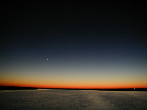 the way, at times lifting me to 9.5 kts, other times slowing me down to 4.3. At sunset I tried to enter a