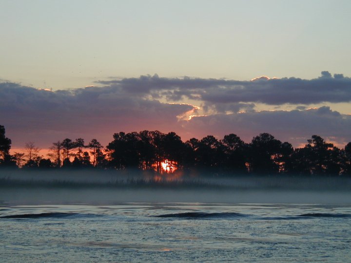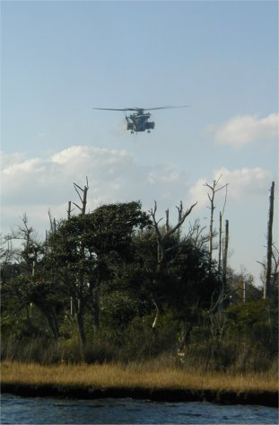 On the hook in Mile Hammock Bay, Part of Camp Lejeune Marine Base. Helicopters buzzing around everywhere.