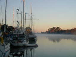 Beautiful day - started cold but warmed up very quickly. I got a LOT of stuff done today. I got a new propane tank (my old one is not legal anymore), sanded and got a coat of paint on my new 'bridgedeck', did laundry, and hosed the birdshit off the boat. Had dinner and listened to music at the bar and found a couple of decent books at the marina book exchange... All that after a 50 mile day! | |||||||||||||