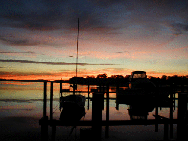 | Sunrise, departure day. The view from my home slip on the Magothy. |