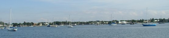 12/13/00 Lake Worth, N. Palm Beach, Fl - The anchorage at the North end of Lake Worth is a waiting area for cruisers waiting for a weather window to cross over to the Bahamas. There are 20-30 sailboats anchored here and more arriving daily. I will stay here until I get some boat work done and then, like everyone else, I will wait for the wind to change.