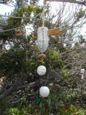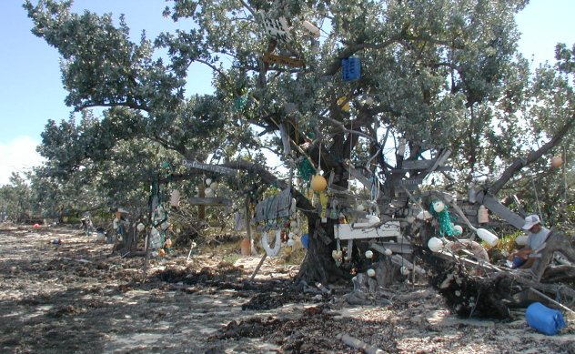 a section of the Atlantic side beach where the cruisers have decorated the trees with shrines or memorials to their visits, made mostly with items found washed up on shore (which is a lot of stuff - pretty much the only thing