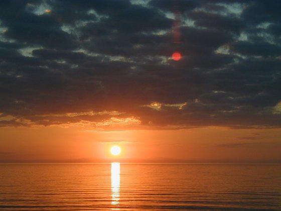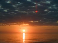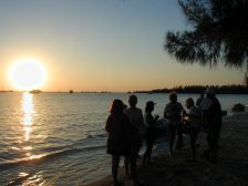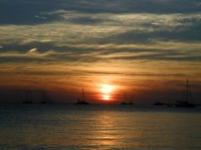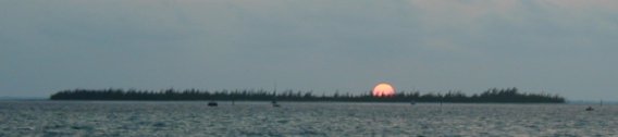anchorage, including seven in our 'fleet' alone. The party went very late with a LOT of rum being consumed. The sunset was fantastic, and the moonrise 2 hours later was equally impressive. A HUGE orange, full moon rising over the island.