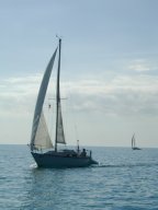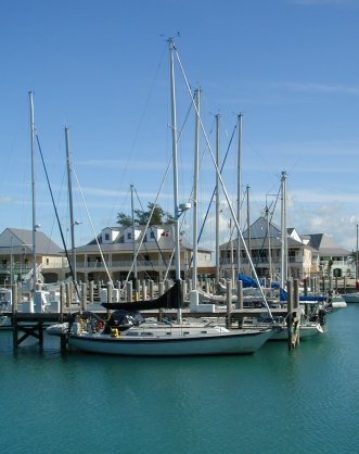 bound for West End, a trip of 53 miles. Winds were light on the stern, and with only an annoying roll, we motored across to the Bahamas - after all that wait the crossing was uneventful! We pulled into Old Bahama